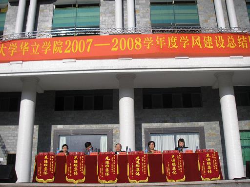 11月12日下午,“广东工业大学华立学院2007-2008学年度学风建设总结暨表彰大会”在综合楼前广场隆重召开。