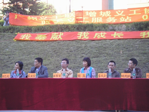11月11日下午四时,蓝天义工协会2008届会员宣誓大会在综合楼前隆重举行,350多名新会员.院各协会会长以及院各级领导参加了本次会议。出席本次大会的嘉宾包括了常务副院长詹业宏、党委书记胡志先、院长助理王学军、学生处处长熊萍、增城义工代表洪陈德、增城血站代表蒋玉珊女士、团委书记李庆全、团委副书记姚轲邺、指导老师方卿等有关领导.