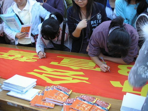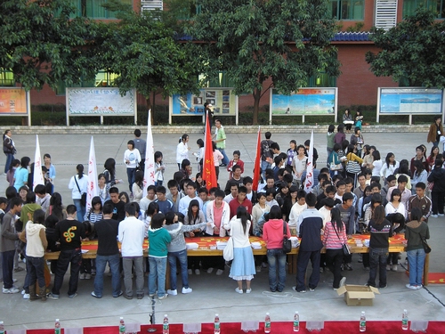 签下我们的名字,实现我们的誓言,用爱心回报最需要帮助的人.在同学们高昂的话语和一张张热情的笑脸中,我们再次看到了蓝天下彼此关爱的心!(蓝天义工协会)