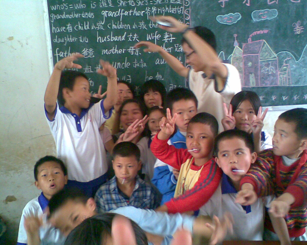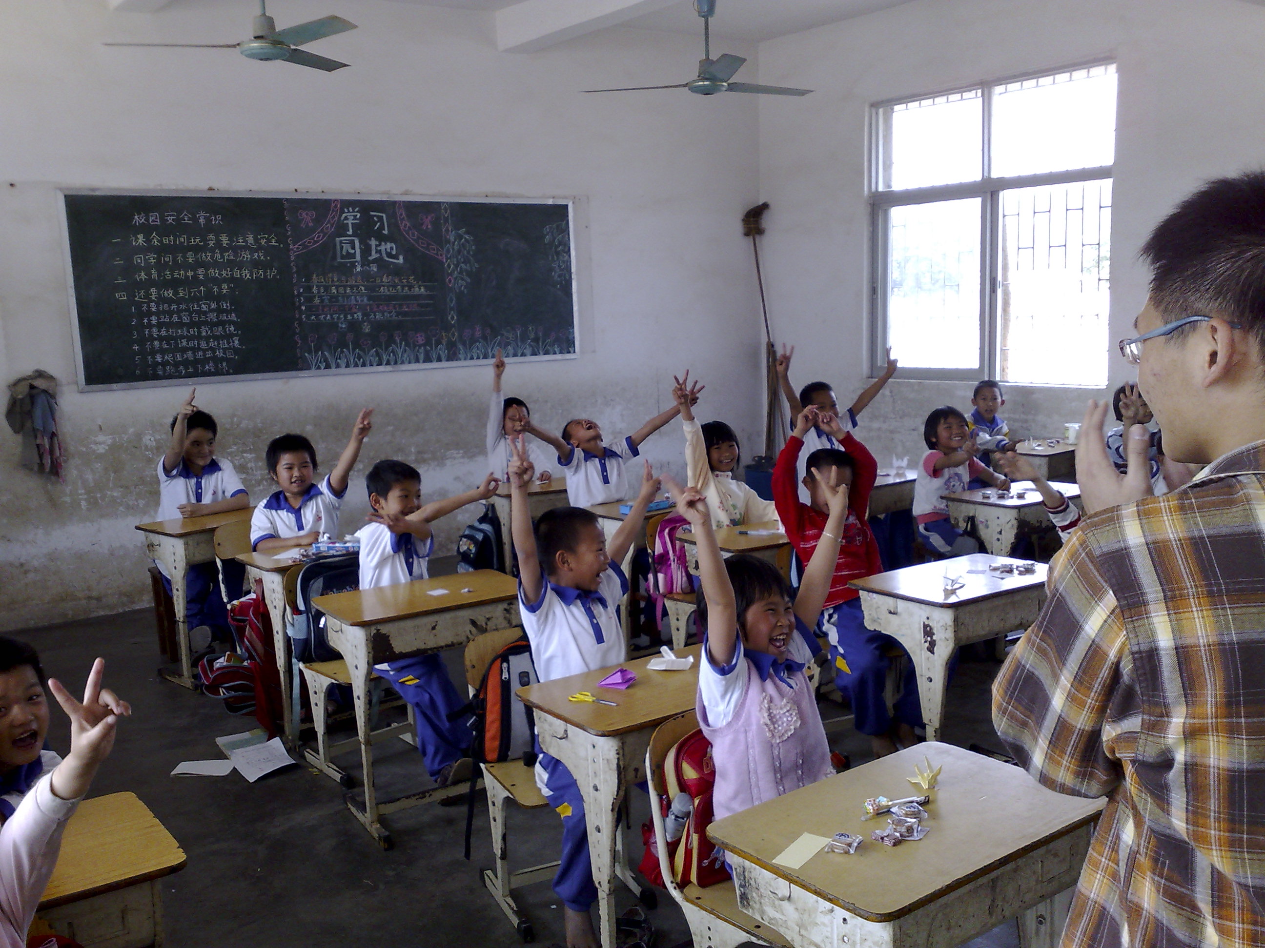 有了以前的义教经历,我们和学校的小孩们建立了很好的友谊,那些小孩对我们的喜爱在我们还没进学校时就已经表现得淋漓尽致。在我们到达学校门口时,就有孩子们朝着我们欢呼着。