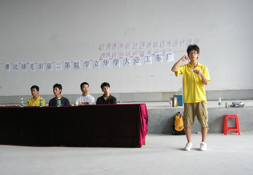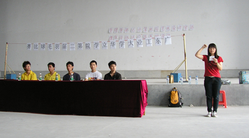 广东工业大学华立学院第二届羽毛球比赛于2009年4月13日下午在羽毛球场顺利拉开帷幕。姚轲邺老师、吉健礼老师等出席了开幕式。