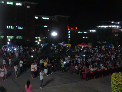 2009年5月14日晚上19点,会计学部在图书馆正门前的小广场举办迎新游园活动和“歌王歌后”争霸赛。