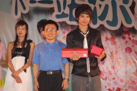 夜色中的综合楼前广场,随着飞扬的青春旋律,放射出了激情的光芒。一开场,选手们通过走cat walk “坐着公关之星汽车”出场。
