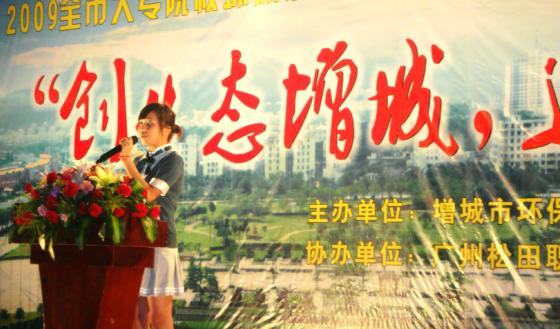 来自增城市各大高校的代表选手分别对于环保和谐增城发表了自己独到的见解,进行了各具特色的主题演讲。