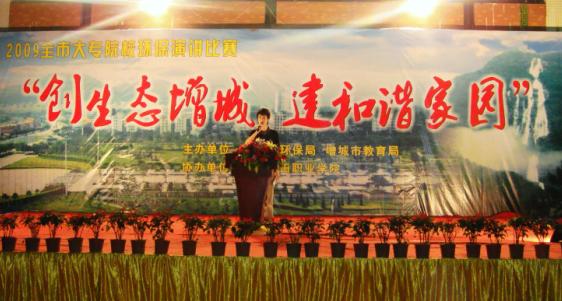 2009年5月26日晚,为响应社会主义和谐社会建设的号召,践行科学发展观,增城市环保局与增城市教育局主办“创生态增城,建和谐家园”主题演讲比赛。应主办方的邀请,学院团委派出胡怡、张仕萌、孙晨露三位同学代表学院参加了比赛,并荣获佳绩。