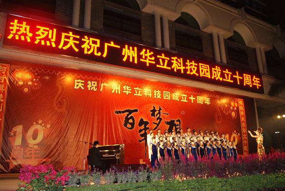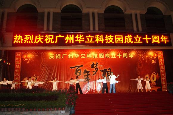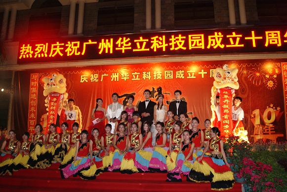 金秋十月,清风送爽,硕果飘香,我们伟大的祖国刚刚度过六十周年华诞,广州华立科技园也迎来了她的第十个生日。10月29日晚上7点,位于广汕路旁的华立科技园一片灯火辉煌,欢声笑语,载歌载舞,喜气洋洋。广州华立科技园成立十周年庆典晚会在广东工业大学华立学院综合楼前广场隆重举行。