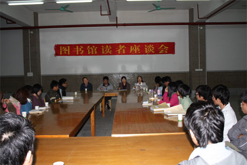 会上,流通阅览部副主任张卓娅,向与会代表回顾了2007年新馆开放以来的发展历程,介绍了图书馆在数字化建设与读者服务工作中所做出的各种努力。图书馆赖馆长做了总结发言,她充分肯定了本次读者座谈会的成功召开,读者发言积极踊跃,提出了许多好的建议,如书库开放时间、报纸更新、非纸质资源利用,增加现代英文版通俗小说、多选购外国文学作品优秀译本,进一步开展图书推荐活动,加强图书馆宣传等。图书馆老师认真记录并热情回答读者提问。馆长承诺就读者提出的某些意见及建议,图书馆会高度重视和着手解决,能解决的问题马上解决,暂时不能解决的个别问题,请读者谅解,并积极争取在条件成熟的情况下尽快解决。最后,希望同学们能够经常走进图书馆、宣传图书馆,积极参与和支持图书馆工作,成为文明的使者和传播者,争做文明读者,使图书馆成为同学们大学四年学习和生活的重要组成部分,并随着图书馆的发展一起成长、成才!