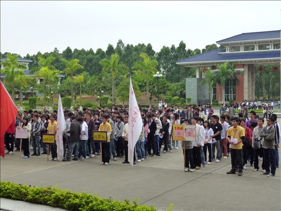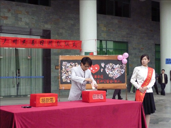12月9日下午,我院在综合楼广场上隆重举行了“广州慈善日”捐款仪式。学院办公室副主任李有红,学生处副处长兼团委书记杜鹏老师以及各学部老师代表、院级团学组织代表、六大学部的团总支、学生会及其干事代表以及07、08、09各班班委代表等400多人一同参加了仪式。今年的慈善活动名称为:“你我他,齐行善— —2009年‘广州慈善日’”。仪式在一种奋进的气氛中拉开了帷幕。