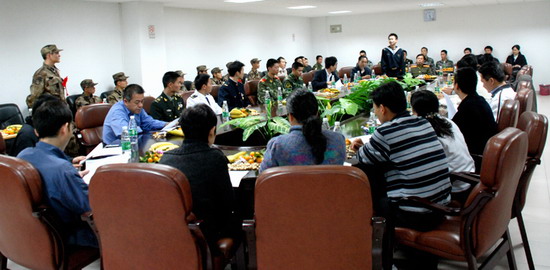 12月9日下午,校本部在龙洞校区隆重举行座谈会,欢送09年应征新兵入伍,欢迎退伍老兵回校。学校党委陈韶副书记出席座谈会并作重要讲话,学校武装部翁专部长、学生处符志刚处长、武装部汪卫东副部长、校团委张育广副书记及各学院党委副书记、学校有关部门负责人,入伍新兵、退伍老兵和学生家长代表共60多人参加了座谈会。座谈会由武装部翁专部长主持。