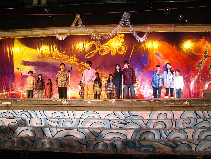 2009年12月17号晚上7点,外语与经贸学部团总支学生会承办的“活跃新生,虎跃新禧”迎新晚会在学院综合楼前拉开了帷幕。