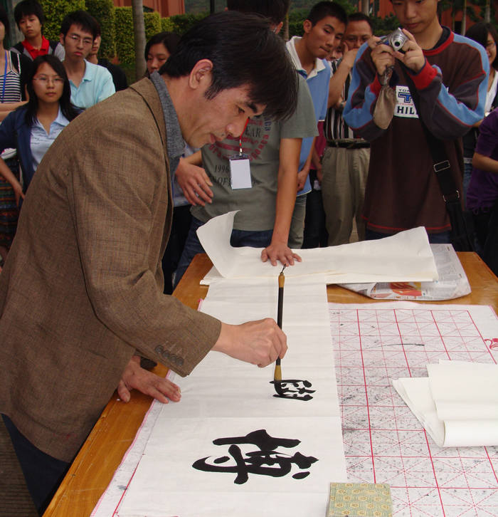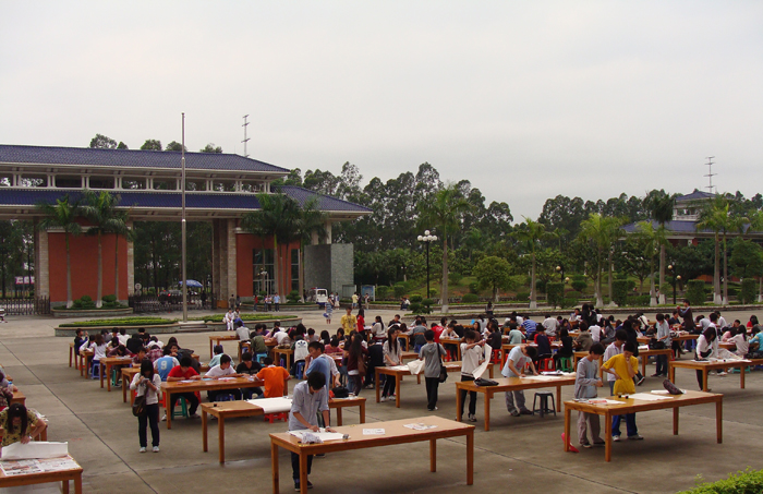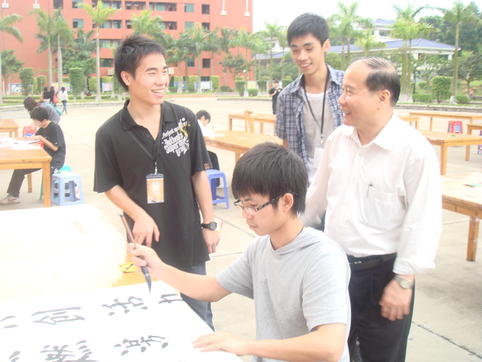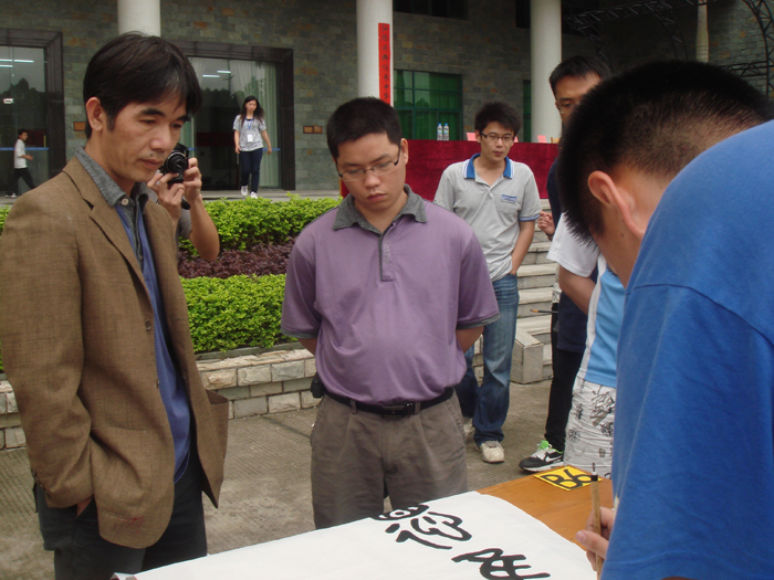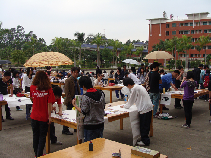 为迎接广州亚运和学院每年一届的科技文化艺术节的到来,4月13日下午,由学院团委主办、书法协会协办的主题为“书写亚运,传承文化,放飞梦想”的第六届书法大赛在学院综合楼前隆重举行。本次大赛特别邀请了增城市书法协会理事会会员李耀明、王冠文两位先生担任评委,学院邓则名副院长、学院党委胡志先书记、学院团委谌裕勇书记等领导老师也出席了本次大赛。