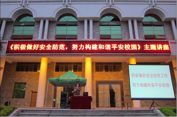 6月8日晚,广东工业大学大学城校区驻校民警陈林群和广东工业大学保卫科梁文锦科长为我院2009级新生作了一场生动的《积极做好安全防范,努力构建和谐校园》主题讲座。2009级全体学生,2007、2008级班干部,院团委、学生会、社联各协会副部长以上干部 ,各学部团总支主席团成员,各学部书记、辅导员约4000多人认真聆听了讲座。