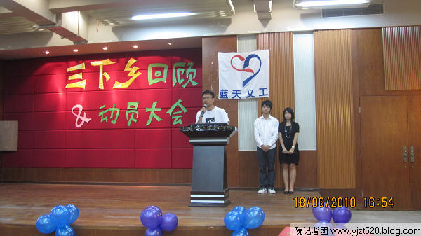 走进贫瘠,丰富心灵,感动亚运!6月18日,蓝天义工协会“三下乡”活动回顾暨动员大会在图书馆3号报告厅胜利召开,团委老师罗诚、市场营销协会以及放飞文学社协会等协会代表出席本次大会。