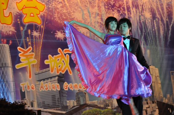 接下来,各种节目闪亮登场,精彩纷呈,为广大的师生观众献上一场视听盛宴。为学院屡获荣誉的国标舞队带着我们进入了《舞之新旅》,他们用优雅的舞步,美妙的身姿,给观众们带来了唯美的视觉享受。默默奉献,屡被上级有关部门嘉奖的蓝天义工协会,带来精心编导的节目《一起走》,为新生祝福,为亚运喝彩。还有扑朔迷离的魔术奇幻表演《MC Magic》、军姿飒爽的《跨越》、满带凌厉劲道的跆拳道表演《舞道魂》、时尚潮流的模特走秀《花城亚运》、活力四射的健美操舞《一起来,更精彩》……