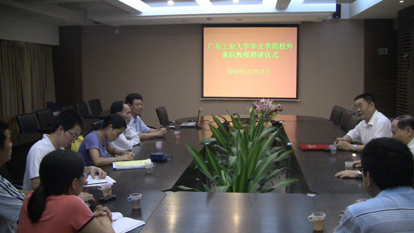 在聘请仪式上,学院常务副院长詹业宏向陈忠义主任简要介绍了学院的发展概况,并代表学院为其颁发了校外兼职教授聘书。陈忠义教授表示,感谢广东工业大学华立学院提供了一个交流学习的机会,同时,表示鼓励和欢迎学院自动化、通信、信息、电气等专业的学生参加智能电网的实践实习工作,他将根据学院的实际情况,结合自身的工作实践,定期给华立学子开设一些相关的讲座,不辜负学院领导和广大师生的厚望。