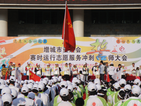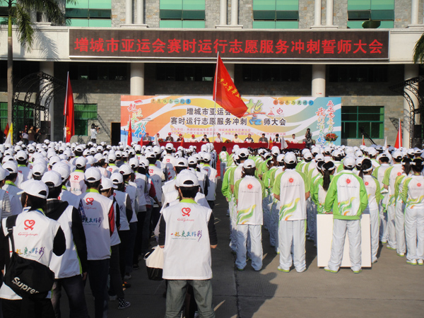 增城市亚运会赛时运行志愿服务冲刺誓师大会在我院综合楼广场隆重举行