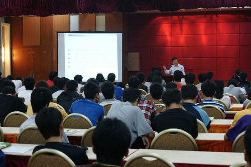 讲座由李斌副处长的致辞拉开了帷幕,他希望我们学子可以从中收获到更多的知识,并完善自己的专业理念。接着,夏德明教授从四方面展开讲解:工程监理的性质、工程监理的地位和作用、工程监理的主要内容以及工程监理的职责。期间,教授以其丰富的专业知识和广阔阅历为同学们全面的介绍了工程监理,博得了听众们的阵阵掌声。在演讲中,教授着重介绍了工程项目主要流程,分四个阶段介绍,分别是项目前期、设计阶段、施工阶段以及评估阶段,其系统的分析,帮助同学们更直观的了解工程项目的整个流程。介绍过后,进入了问答环节,学生们踊跃发言,虽然很繁杂,但教授仍一一为大家解答,为大家解开心中的困惑,让大家更好得定位自己未来的走向。