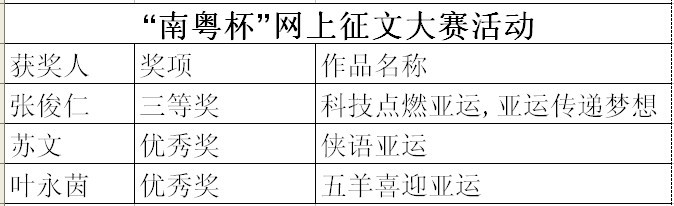 立志修身博学报国教育活动获奖喜讯 作者:学生处 发布时间:2011-03-16 00:00:00 浏览次数:次 【字体:小 大】 2010年广东高校开展立志修身博学报国主题系列教育活动,以迎接亚运会系列教育活动为载体,开展了“南粤杯”以“迎亚运讲文明树新风”为主题的大学生网上征文大赛等系列活动。 我校开展了形式多样的校园文化活动,从中推荐了一批优秀成果参加全省比赛,经过各项评比,我校学生获得了较好的成绩。现把结果公布如下: 祝贺以上获奖同学! 学生处 2011年3月16日 分享到: 【打印正文】