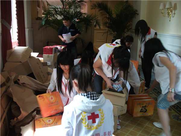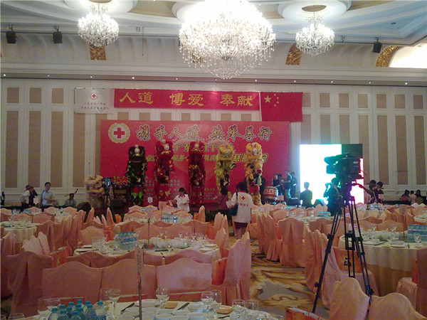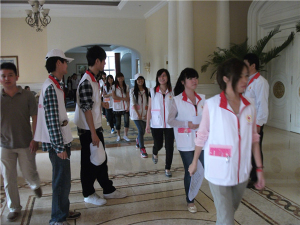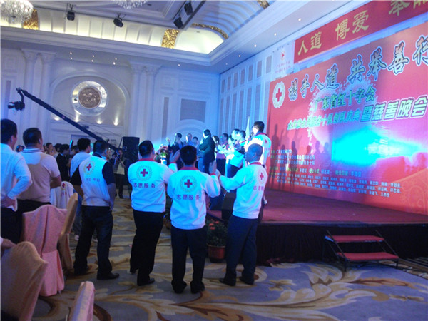 在红十字会成员和广东工业大学华立学院蓝天义工的51名志愿者的共同合作下,晚会有条不紊,准备就绪。