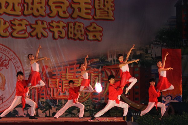 轻盈的舞步随着悠扬的音乐四起,院艺术团国标队与声乐队一起演绎出一支《把一切献给党》,以嘹亮的歌喉和优雅的舞姿表达了对党的无限热爱,欢乐的健美操以《飞跃》的舞姿迎接建党90周年庆,精彩的模特表演演绎着建党90年来中国与世界的变化,气势赳赳的街舞舞蹈则以《军魂》向我们展现军人的不屈不饶。
