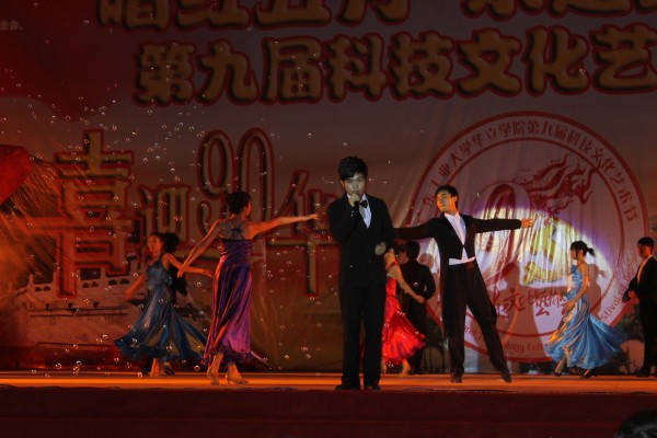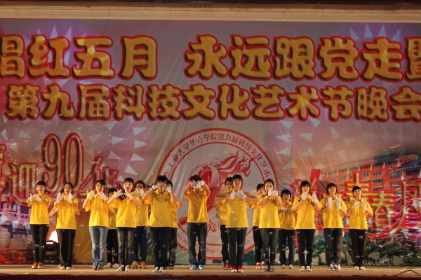 为歌颂党走过90周年风风雨雨的光辉历程,以及庆祝华立园一年一度的科技文化艺术节。为此,我院于2011年5月10日晚上7点整在综合楼前广场隆重举办“唱红五月,永远跟党走”暨第九届科技文化艺术节晚会。