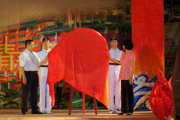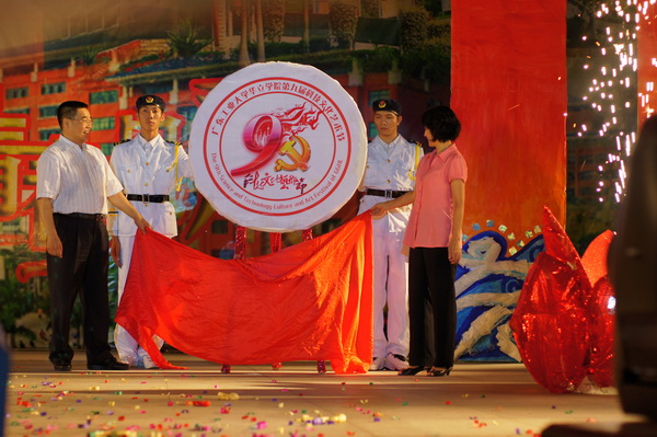 随后,詹业宏常务副院长与党委书记王锦秀一同为本届科技文化艺术节会徽揭幕。
