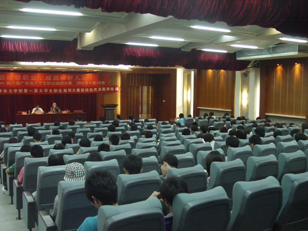2011年5月24日,Job168.com第六届广东省大学生职业规划大赛暨广东工业大学华立学院第一届大学生职业规划大赛启动仪式及指导培训在学院图书馆2号报告厅隆重举行。出席本次大赛启动仪式的嘉宾有:主管副院长、校外教学管理处李斌副处长、各学部学生工作书记及就业副主任等相关老师及各个学部的学生代表参加了会议。