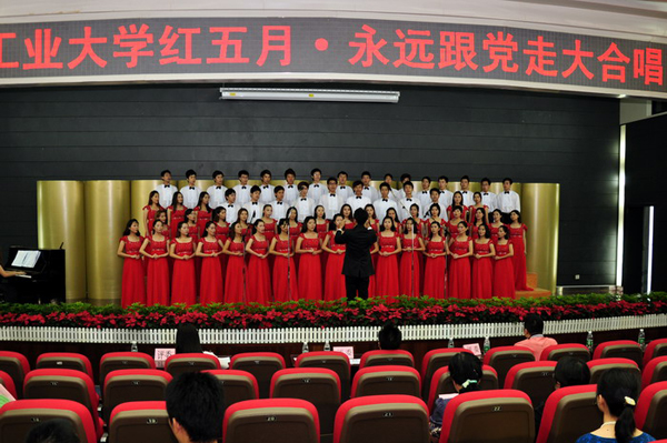 5月28日,广东工业大学红五月•永远跟党走大合唱比赛在大学城校园大讲堂隆重举行。学校党委米银俊副书记,校关工委主任、原校党委书记陈年强同志,校关工委副主任、原校党委副书记刘大允同志以及各学院的领导、领队老师等参加了此次活动。包括我院合唱团在内,来自广东工业大学的自动化学院、轻工化工学院等18个学院的合唱队伍参加了这次比赛。