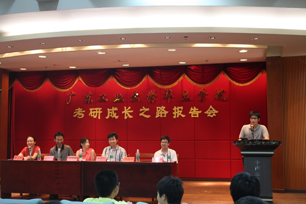 报告会特邀本院会计学部07级会计6班马千芸、建设学部07级土木1班黄乘亿、机电与信息工程学部07电气1班贺继胜、机电与信息工程学部07机械3班李振邦四位考取2011年硕士研究生的同学代表作主题发言(今年在我院图书馆考研自修室复习的同学有13位 考取了2011年硕士研究生),四位同学以亲身经历和自我实践,向学弟学妹们讲述了考研过程中的艰辛与痛苦、成功与喜悦……他们的现身说法激发了广大学生的学习热情,燃起了大家心中的渴望。亲身讲述,现场互动、提问交流,掀起了一阵阵高潮。十几位同学争先提问,关于考研学校和导师如何选择,数学、英语、政治、专业课复习方法及考试技巧,如何面试等。嘉宾们逐一解答,并鼓励大家,在考研的征程中一定要有足够的决心、信心和耐心;一定要有坚持到底,不达目的不罢休的顽强意志。