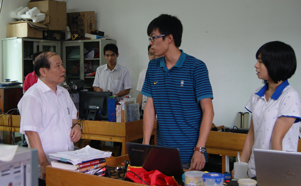 8月18日下午,邓则名副院长到实验室探望了留校准备比赛的学生。他鼓励同学们要刻苦努力,自强自信,从容以对,为学院争取更多的荣誉。了解到有些同学为了做实验甚至睡在实验室里面后,他叮嘱大家在认真备赛的同时也要注意身体以及安全问题,有需要学院帮助的地方就及时提出来,学院一定会尽力帮助大家,让大家安心备赛和比赛。同时,他也现身说法,结合自己的人生经历,和同学们谈笑风生。邓院长这种乐观自信的态度感染了同学们,他们纷纷表示,一定会全力以赴,为学院增光添彩。