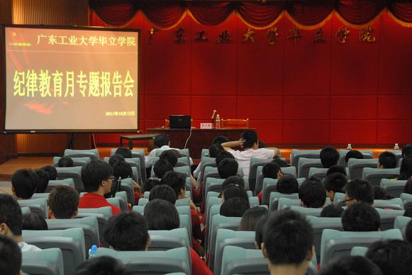 为贯彻2011年广东省委及广工大党委纪律教育月的精神和要求,落实“以人为本、执教为民”的主题内容,加强同学们特别是党员的学习纪律,我院党委10月13日邀请了广东工业大学自动化学院党委书记罗小燕书记做了主题为《树立理想信念,领会讲话内涵,肩负时代使命》的纪律教育月专题报告会。