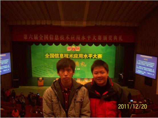 第六届全国信息技术应用水平大赛全国总决赛于2011年12月18在北京科技大学举行。我学部由王韬老师带领09计算机1班的黄泽宇同学赴京参加比赛。