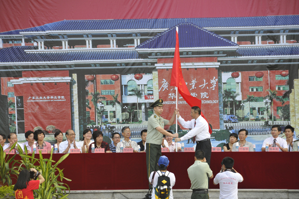 秋风飒爽,丹桂飘香。2012年9月6日,广东工业大学华立学院2012级开学典礼暨军训动员大会在综合楼前广场隆重举行。出席此次大会的领导与嘉宾有:广东工业大学党委常委、副校长章云教授、校办主任陈卓武、教务处副处长邓永谦、学生处副处长唐建伟、保卫处副处长钟尚亮、招生办主任陈伟民、广州华立投资有限公司叶雅明总经理、何绍圻董事以及华立园兄弟院校的领导,院领导詹业宏、王锦秀、邓则名、柏育红、王学军以及各部门负责人参加了大会,大会由常务副院长詹业宏主持。