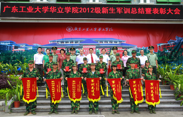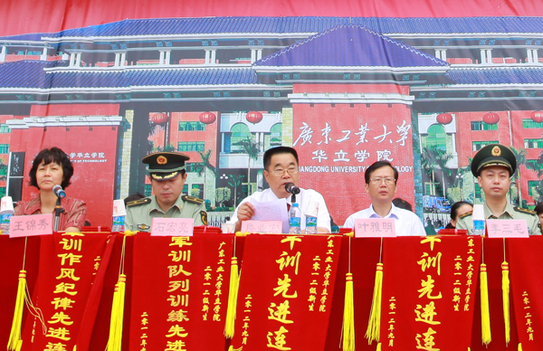 最后,王锦秀书记从承训部队领导手中接回军训团团旗。至此,广东工业大学华立学院2012级新生军训圆满结束。
