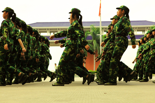 接着,在各位领导、嘉宾和广大师生的注目下,4700多名华立学子身穿迷彩服,迈着整齐的步伐,喊着嘹亮的口号,英姿飒爽,精神抖擞,他们精彩的拳术表演赢得了热烈掌声。男子士气高涨、女子活力澎湃,分列式、擒敌拳、匕首操等方队表演用力量把军训的成果展现得淋漓尽致。