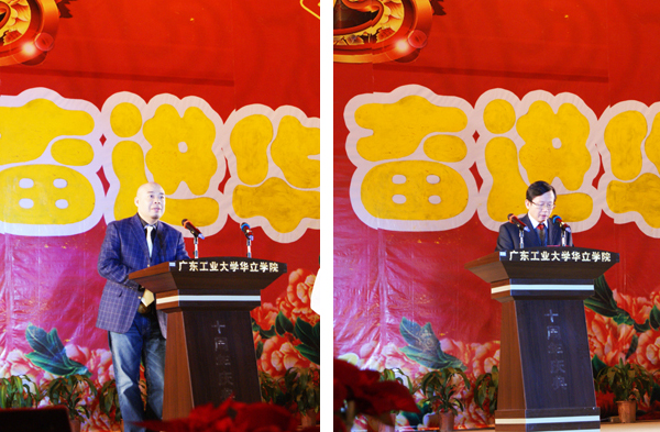 晚会上,广州华立投资有限公司张智峰董事长、叶雅明总经理分别致辞,向在华立园辛勤工作的广大教职员工致以亲切的问候和诚挚的谢意,向一年来各单位取得的进步和成绩表示热烈的祝贺。回顾过去的一年,华立教育事业蓬勃发展,教学质量和办学水平不断提高,特别是我院在省级以上教研项目上取得了重大突破,在学科学术竞赛中进一步凸显优势,为华立学院教育品牌再添亮色。在董事会的带领下,华立人精诚团结、奋发进取,壮志满怀,为打造“百年名校、百年名店”而努力奋斗,必能迎来圆梦的辉煌时刻。