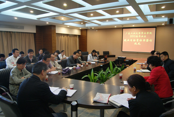最后,詹业宏常务副院长、王锦秀书记与学院7个学部以及校外教学管理处签订了2013届毕业生就业目标责任书,明确了各学部以及校外教学管理处各阶段任务和就业目标,层层落实,确保2013年我院毕业生就业工作再上新台阶。