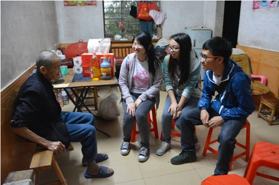 到达大楼村后,同学们按照原定计划有条不紊地开展工作,分组走访了村里的15户困难家庭。在走访中,同学们为困难户送上了米、油等生活物资和慰问金,并与困难户进行深入地交谈,鼓励他们树立信心、积极面对生活。