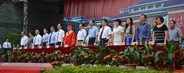 在庄严的国歌中,毕业典礼拉开序幕。章云院长发表致辞。他向即将告别母校、踏上新的人生征途的全体毕业生表示衷心祝贺,并对全体毕业生寄予期望和祝福:一是面对挫折和困难要学会乐观和坚强;二是面对未来要充满信心;三是面对社会要心存责任,勇于担当;四是面对责难要学会理解和宽容。