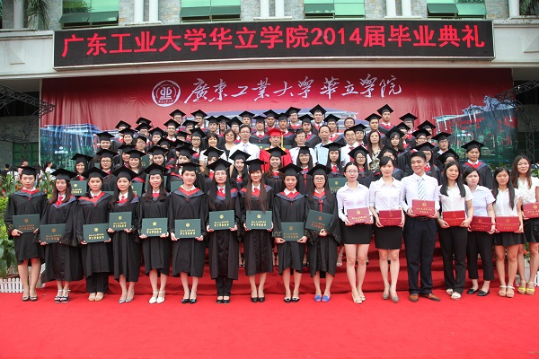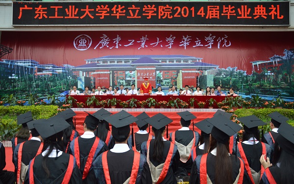 为庆祝我院2014届毕业生圆满毕业,开启人生美丽新篇章,6月30日上午,我院在综合楼广场前隆重举行2014届毕业典礼。广东工业大学副校长、华立学院院长、博士生导师章云教授,广州华立投资有限公司总经理叶雅明,广东工业大学华立学院校务委员会主任董小麟,广东工业大学校办、教务处、学生处、保卫处负责人,兄弟院校领导,我院领导詹业宏、王锦秀、柏育红、王学军和郭颂平,院属各部门负责人、教师以及2014届全体毕业生出席了典礼。毕业典礼由常务副院长詹业宏主持。