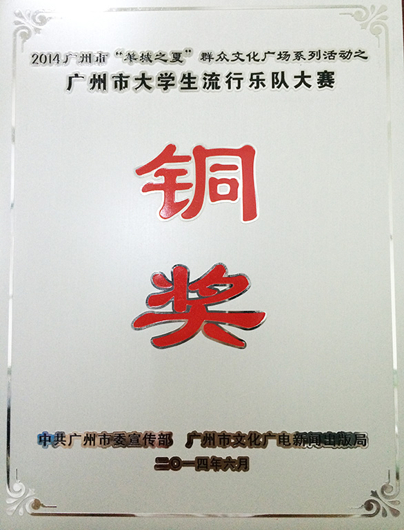 喜报:我院FR碎石乐队在2014广州市大学生流行乐队大赛中获得佳绩 作者:校团委 发布时间:2014-07-09 00:00:00 浏览次数:次 【字体:小 大】 由中共广州市委宣传部,广州市文化广电新闻出版局主办的2014广州市大学生流行乐队大赛总决赛于2014年6月21日下午在广州大学城举行。 我院FR碎石乐队参加本次大赛并荣获铜奖。 分享到: 【打印正文】