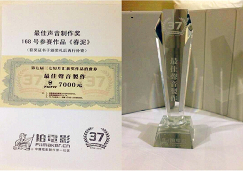 近日,第七届三七短片汇颁奖典礼在北京成功举行,我院钟广林同学及其团队参赛作品《春泥》获得组委会评委的一致好评,荣获“最佳声音制作奖”。