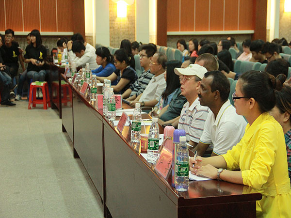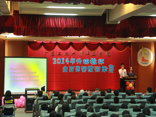 10月9日晚18时,2014年“外研社杯”全国英语演讲大赛决赛在图书馆2号报告厅隆重举行。本次比赛由外语外贸学部和CCTV联合承办。大赛邀请了副院长郭颂平、教务处科长李孟、部长祖艳凤、校内教学副主任陶泽邦等嘉宾,同时有幸邀请到Neil外教、Louis外教、李冀宏教授、魏民教授、徐祥明教授及其专业教师担任本次大赛的评委。