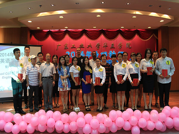 最后,各选手相互祝贺、握手,并与所有到来的嘉宾和评委一起合影留念,至此2014年“外研社杯”全国英语演讲大赛决赛取得圆满成功!