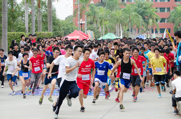 接着,在学院常务副院长詹业宏的一声令下,参赛选手在礼炮声下弦上之弓一般冲出起点,而“趣味马拉松”比赛也在观众的欢呼声中热烈进行。