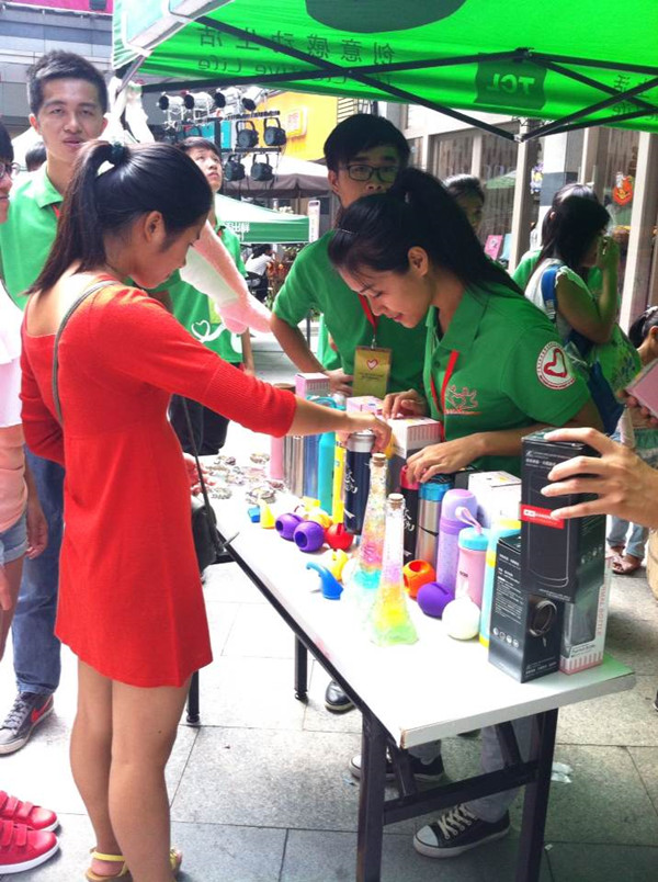 经过义卖志愿者的有序准备,2014年首届高校公益集市于当天下午1点30分正式开始。义卖摊位的商品琳琅满目,囊括居家用品、学习用品、毛绒玩具、植物盆栽等。据了解,此次义卖的商品都是同学们自发捐献的,旨在帮助更多有需要的人士。