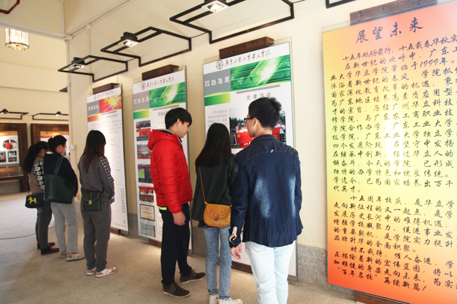 我院举办十五周年校史展 作者:学院办公室 发布时间:2015-01-23 00:00:00 浏览次数:次 【字体:小 大】 在校庆十五周年之际,我院在图书馆一楼展厅举办了十五周年校史展,展出了建校十五周年发展历程的珍贵史料。学院领导董小麟、詹业宏、郭颂平、王锦秀、柏育红、王学军及其他师生到场参观。 本次校史展览包括学院历史沿革、领导关怀、师资建设、办学硬件、教研教改、党建活动、学风建设、校园文化、校外教学、国际交流等板块,题材丰富、内容多样,回顾了我院十五年来的发展历程,彰显了华立人励精图治、创新强校的精神风采,受到前来参观的院领导及师生们的一致好评。 回顾历史,华立人激情澎湃;展望未来,华立人信心满怀;祝愿华立学院的明天更美好! 分享到: 【打印正文】