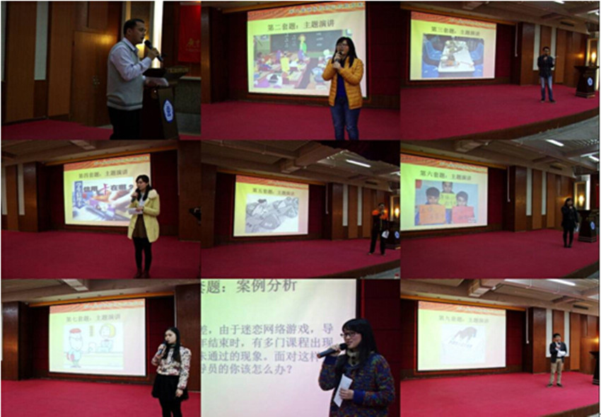 据悉,本次辅导员职业技能竞赛包括基础知识、主题演讲、案例分析、博文写作、自我展示、主题班会等环节,经过前期选拔,共有9名选手进入了最终的决赛。