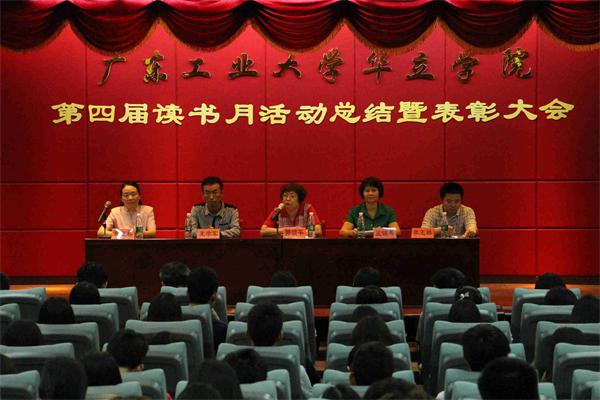 5月21日下午,广东工业大学华立学院第四届读书月活动总结暨表彰大会在图书馆二号报告厅隆重举行。学院党委书记王锦秀,学院副院长郭颂平,学院副院长王学军,学生处处长李玉林,图书馆馆长赖卫桥及各学部书记和学生代表出席了本次大会。