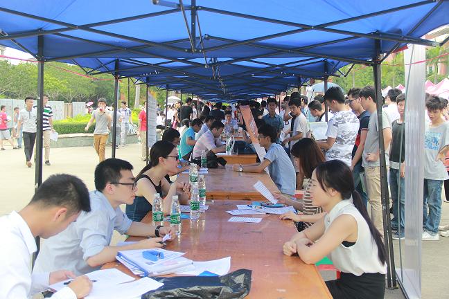 5月28日下午2点,我院在综合楼前广场举办2015年校企合作校园招聘会。这是学院推进“3+0.5+0.5”人才培养模式改革,搭建校企供需平台,落实实习和就业岗位的重要举措。近年来,为促进大学生实习和就业,学院已形成了以大型校园招聘会为中心,各种形式的专场招聘会、宣讲会为补充的梯度平台,为大学生实习和就业提供了广阔的信息渠道。